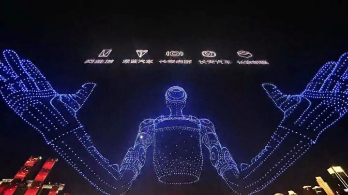8月2日晚,5000架无人机绘制“新央企 新长安”字样,成为山城夜空最耀眼的风景。